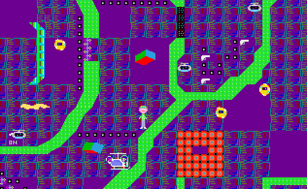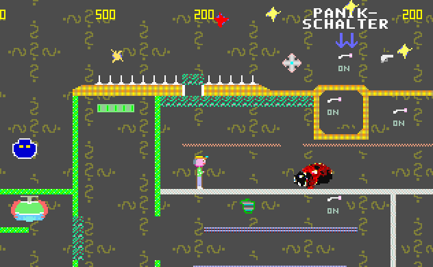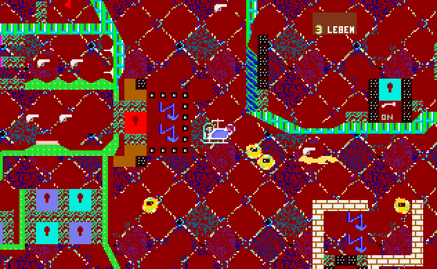 Sammeln Sie Diamanten, Schlüssel und Punkte ein. Betätigen Sie Schalter oder fahren Sie mit den Aufzügen,